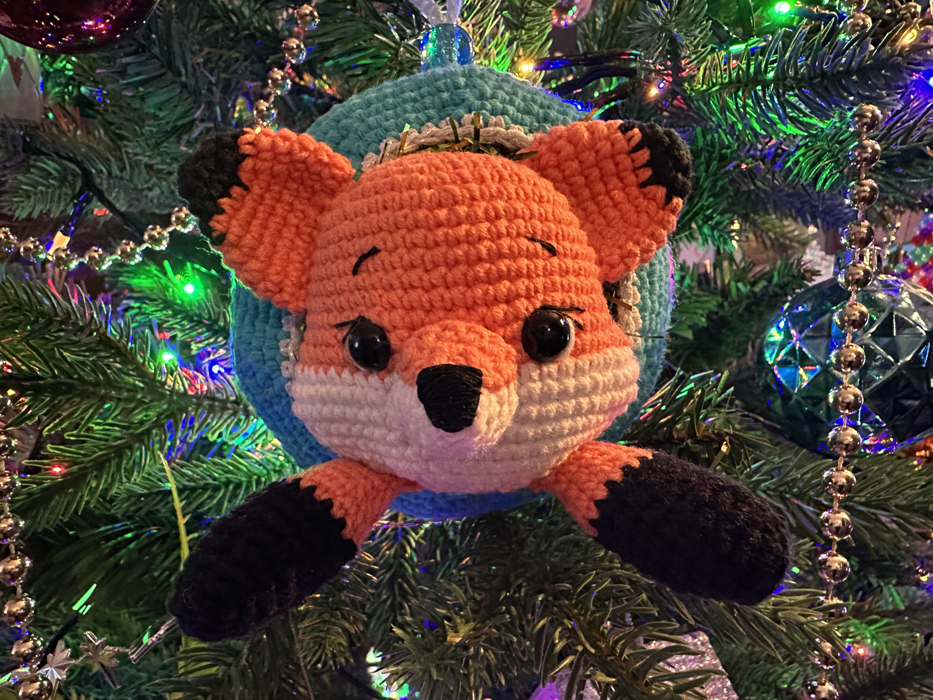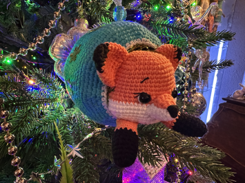 Услышала, что Данита прилетает в Нидерланды. Связала для неё такой новогодний ёлочный шарик с лисёнком. Но она не вышла на связь, возможно, визит был очень короткий. Так что подарок подождёт и повисит пока на моей ёлочке.