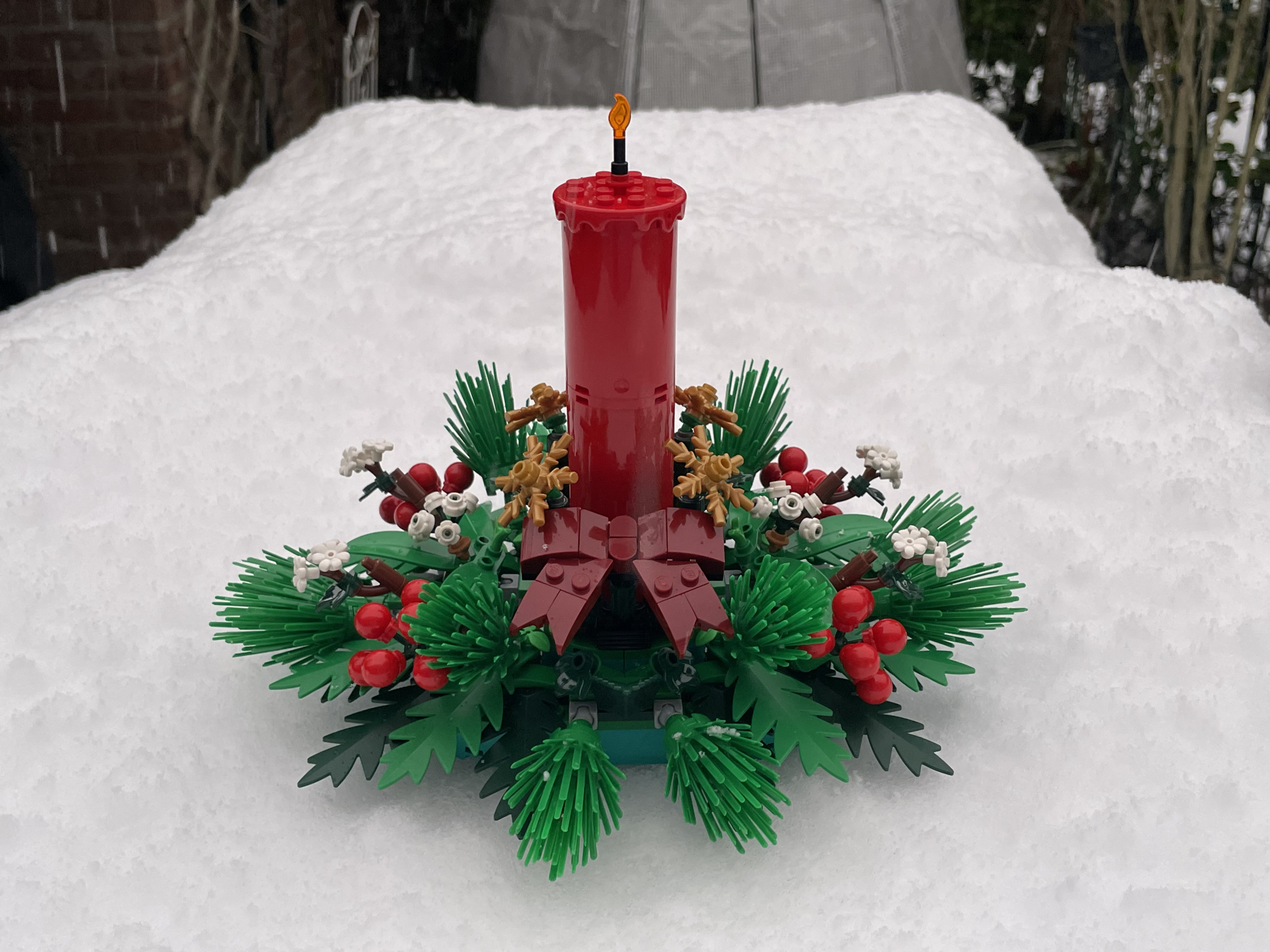 Маша собрала свою новогоднюю настольную Лего композицию со свечкой номер 40743.