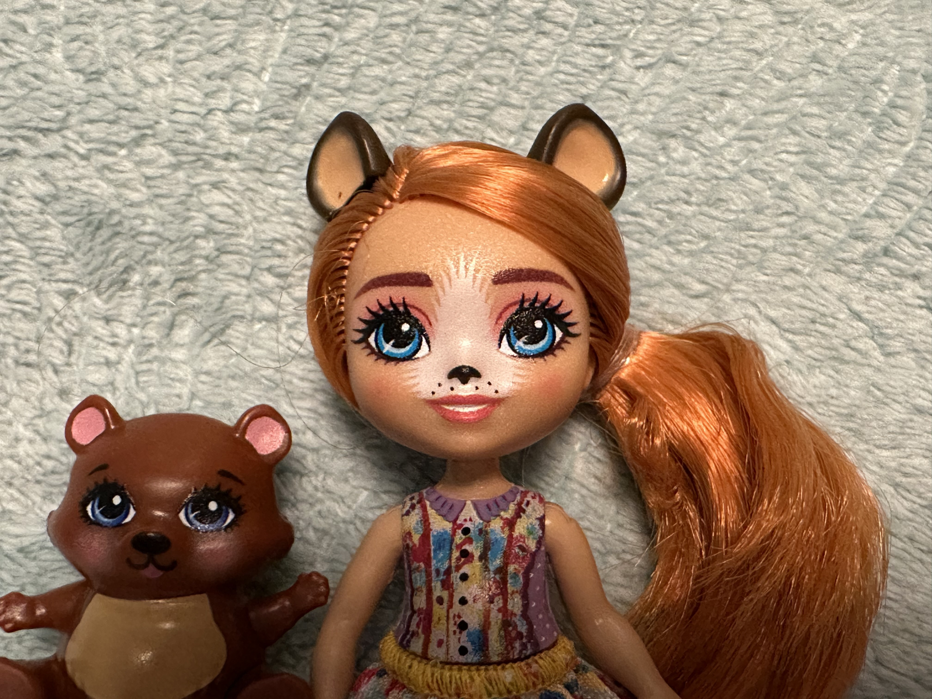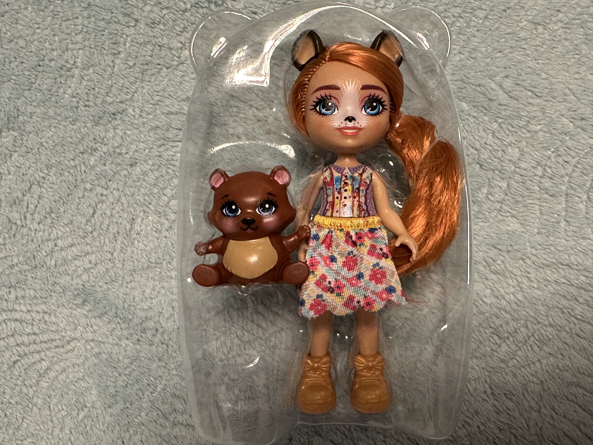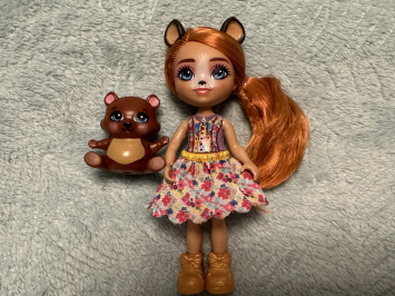 Случайно попалась мне в магазине по распродаже эта малышка Enchantimals Bexie Bear & Bidie. Миленькая девочка с рыжими волосами — хорошее дополнение в мою коллекцию.
