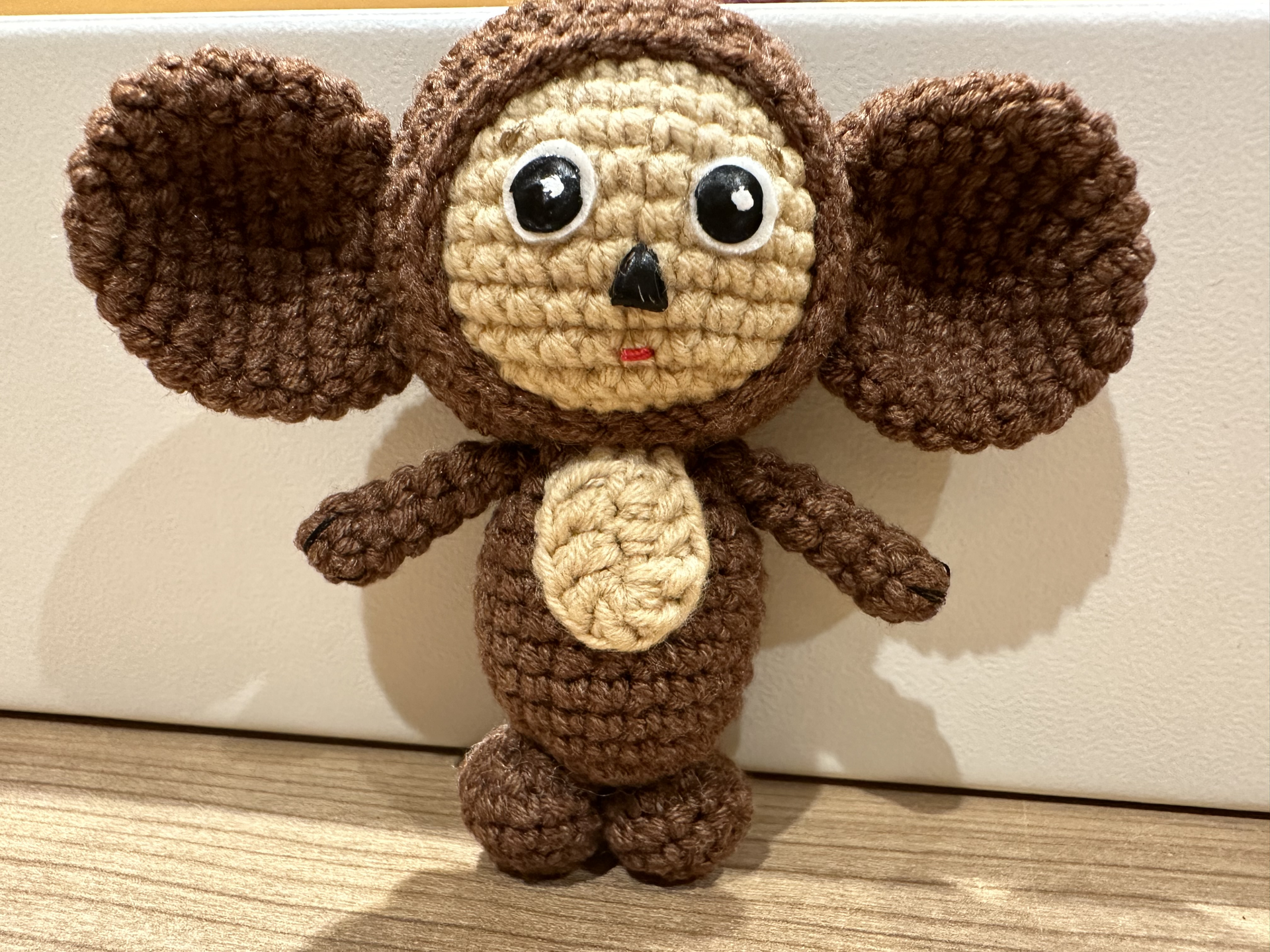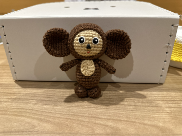 Первый раз связала Чебурашку под заказ на продажу. Коллега по клубу попросила связать его для своей подруги из Украины. Я связала, только он из тонкой нитки получился маленького размера как брелок.