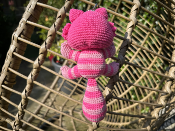 Закончила сегодня вязать Чеширского кота по описанию из Интернета. Я пообещала подарить его своей невестке Анечке, которая очень любит этого персонажа.