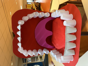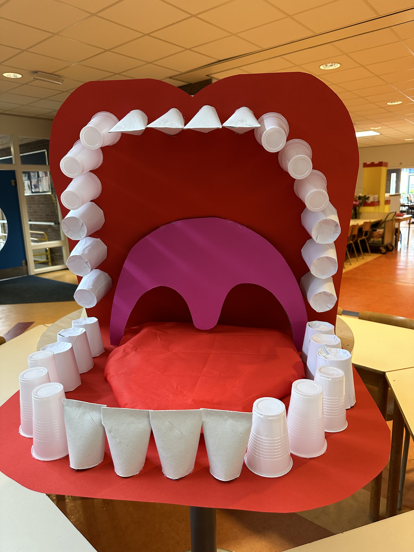 For a school project called “Journey Through Your Body,” I made a model of a large mouth with a tongue and teeth.