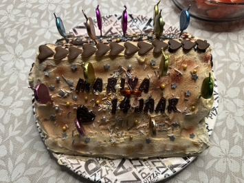 Mom baked a signature cake, “Carpathian Cottage,” for her granddaughter, and I decorated it.
