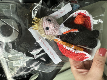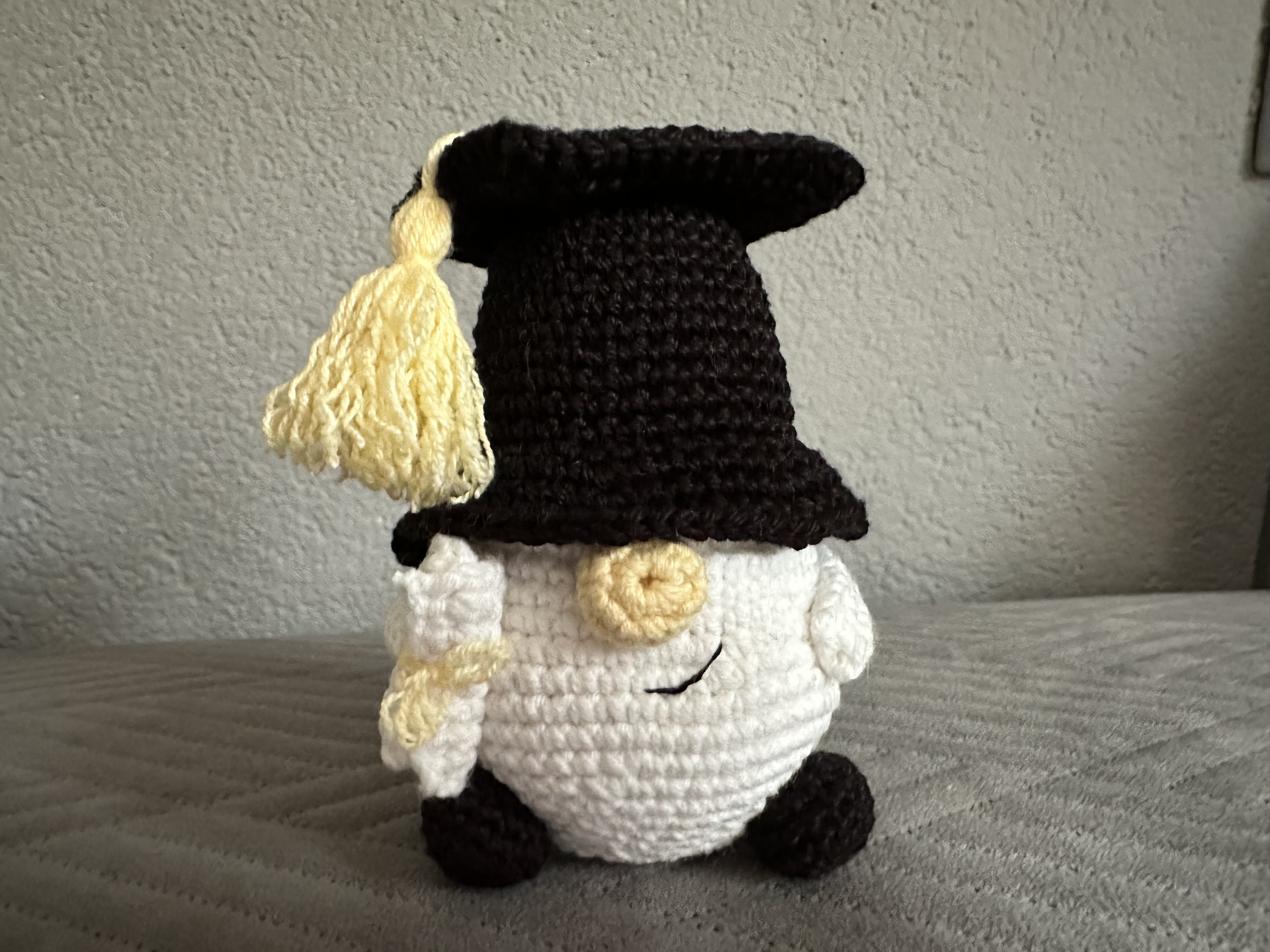 For Anechka, I crocheted an online class gnome with a graduation cap and diploma, following the description, for her graduation.