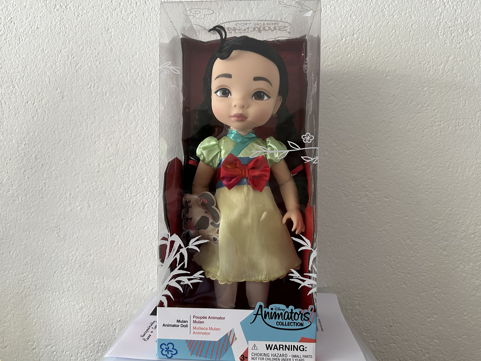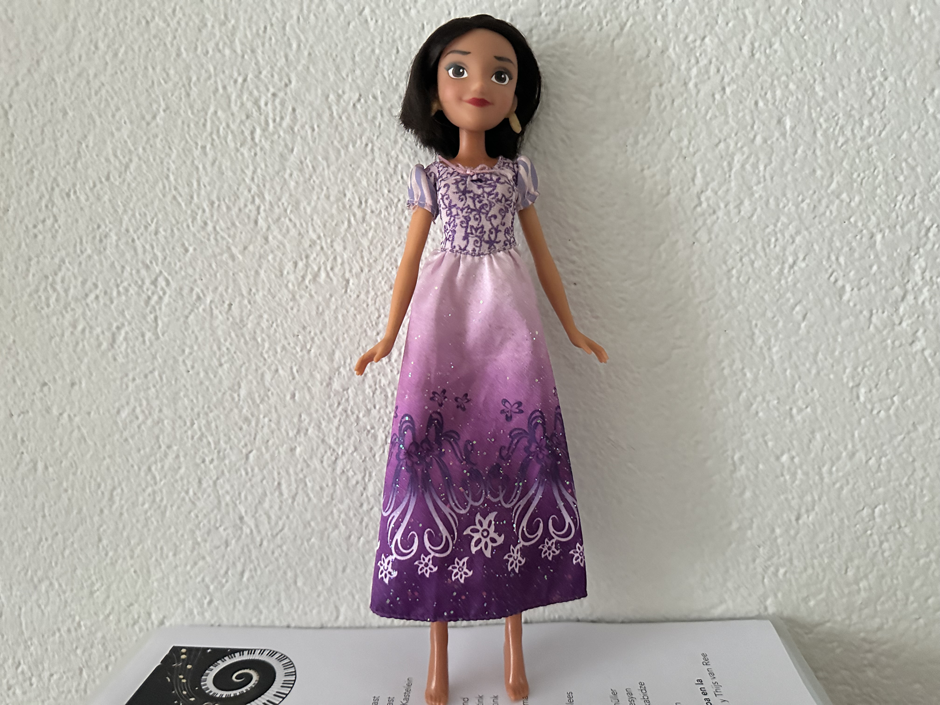 Today I was at Comic Con with the girls, and I bought a Disney Animators Mulan doll, as well as a rare Disney Esmeralda from The Hunchback of Notre Dame. And I also bought a used Elena of Avalor doll from Hasbro, but it was just cut and dressed in someone else’s outfit, it looks like from some Rapunzel.