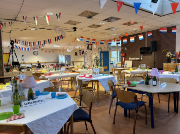 I made a balloon arch in the colors of the Dutch flag today to decorate the school entrance for the graduation ceremony.