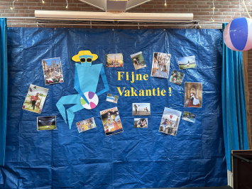 I decorated the school walls as a photo gallery with pictures of our students on vacation with a beach ball.