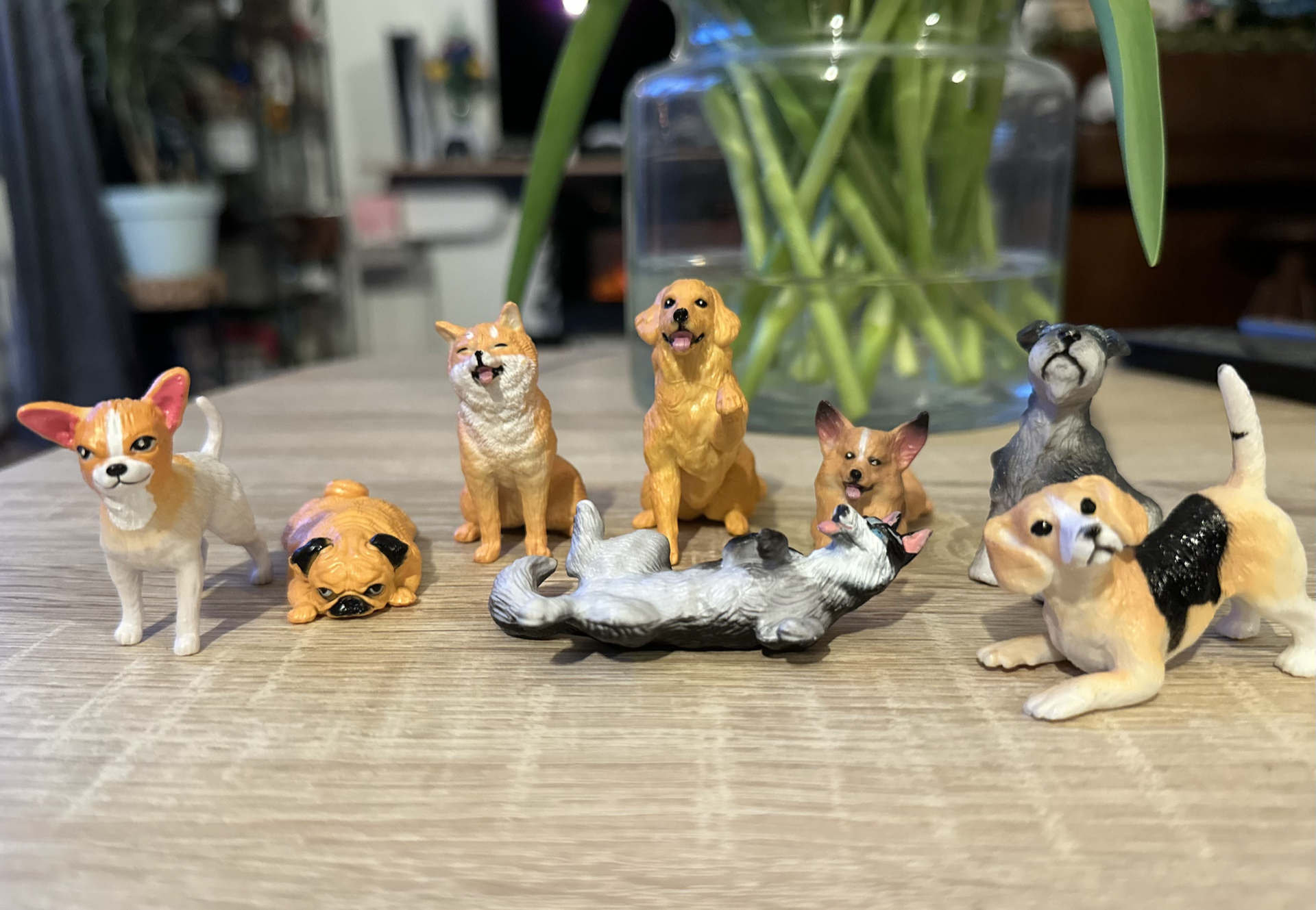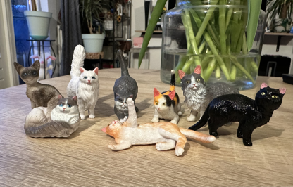 Vandaag ben ik een leuke set van 8 miniatuurtjes hondjes en 8 katjes tegengekomen. Ze zijn van verschillende rassen en in verschillende poses, een fijne aanvulling op de poppenhuisdieren.