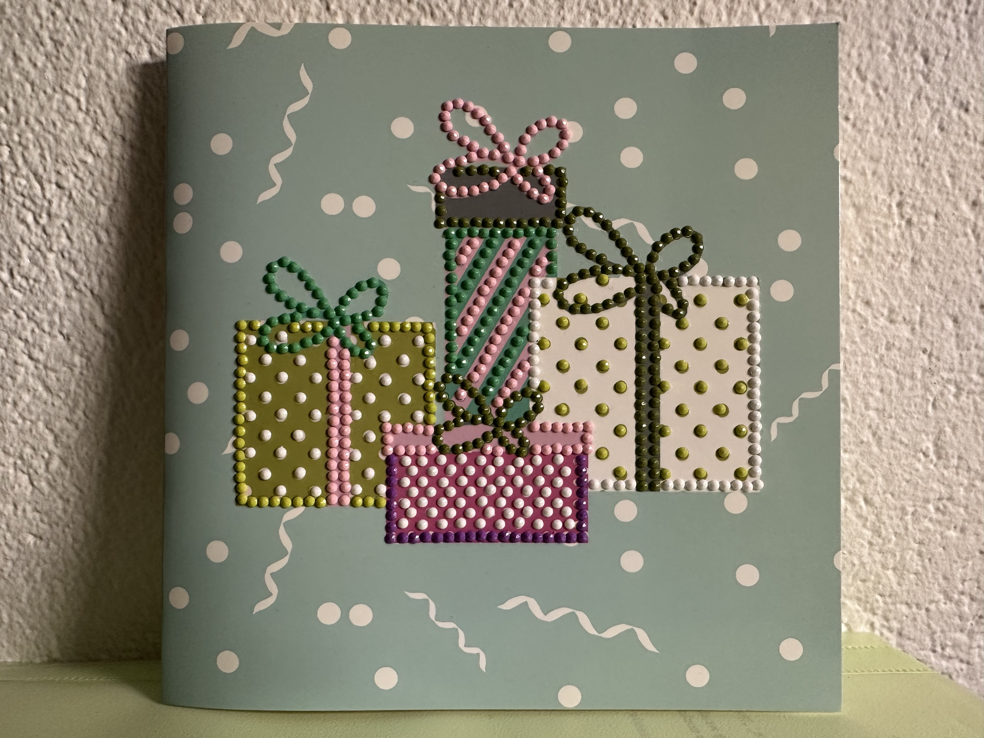 Алмазная мозаика это процесс создания объёмной картины из разноцветных страз на плотном холсте. Акриловые стразы выкладываются по заданной схеме на предварительно проклеенной основе. Схема рисунка нанесена на основу и каждый цвет помечен определённым символом, буквой или цифрой. Пока что у меня немного работ в этой технике. Это увлекательно, но затратно по времени.
