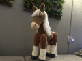 Связан из толстой велюровой пряжи по описанию из книги «Пони амигуруми» Кристел Дроог-Деккерс.