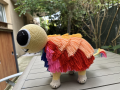Этот символ года связан по описанию из Интернета из пряжи велюр. Он получился довольно большим, внутри спрятана пищалка.