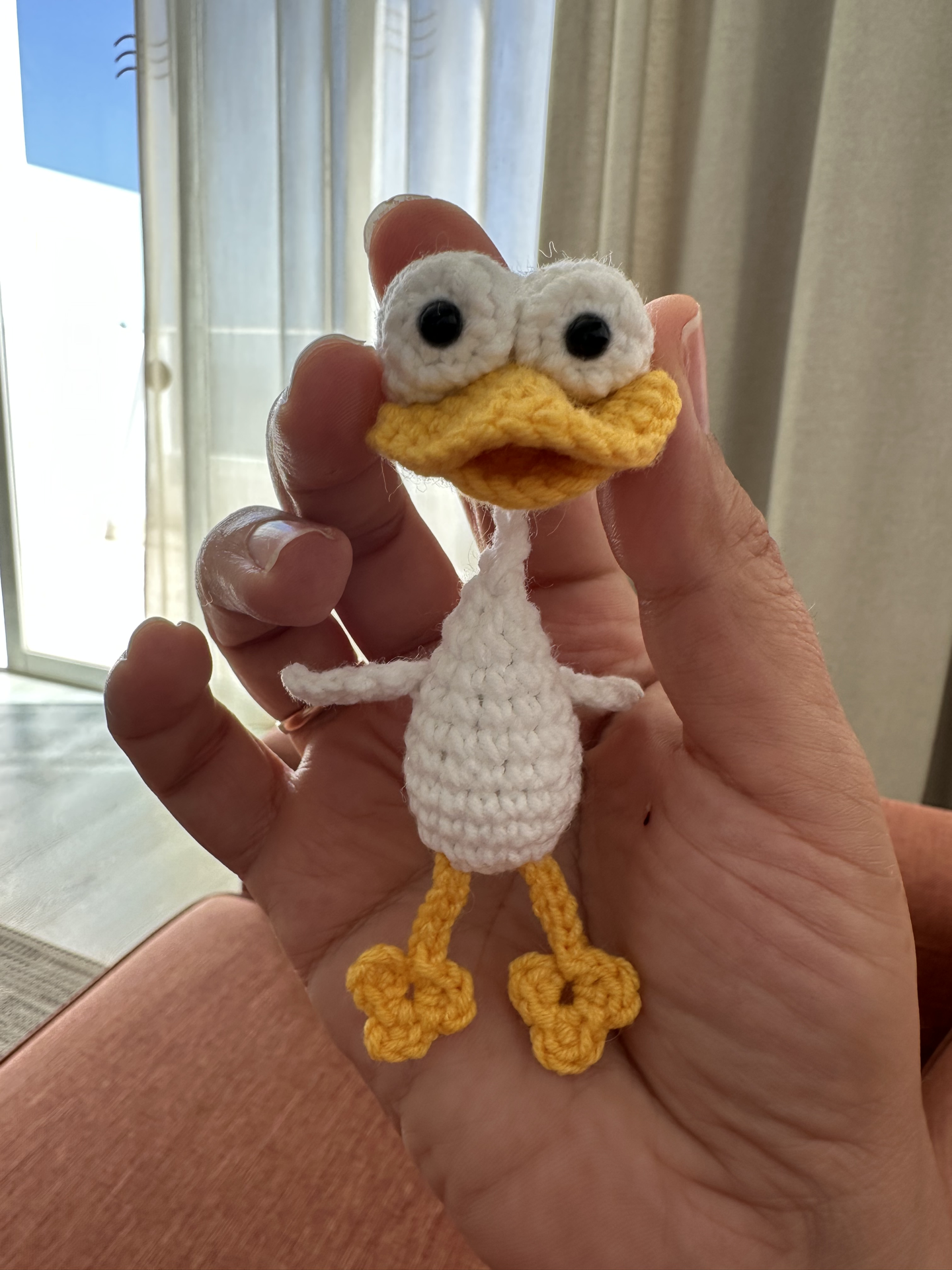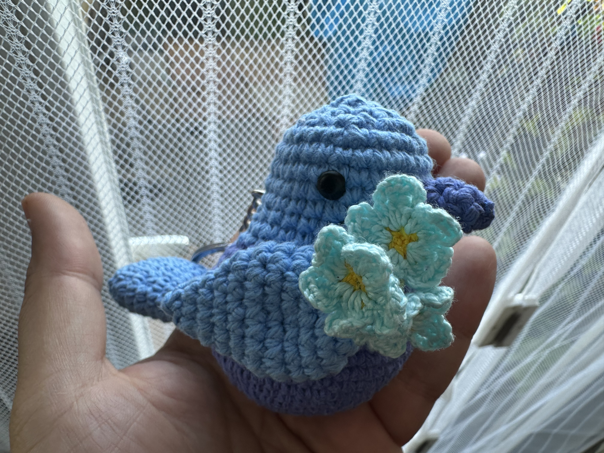 Придумала и связала для коллеги такую птичку как прощальный подарок.
