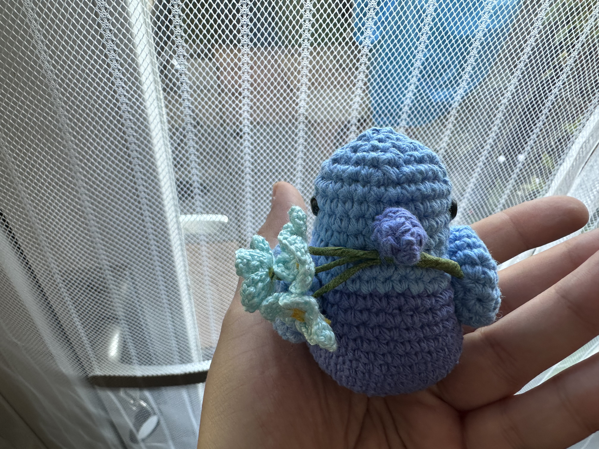 Для племянницы связала маленького бегемотика по описанию из Интернета.