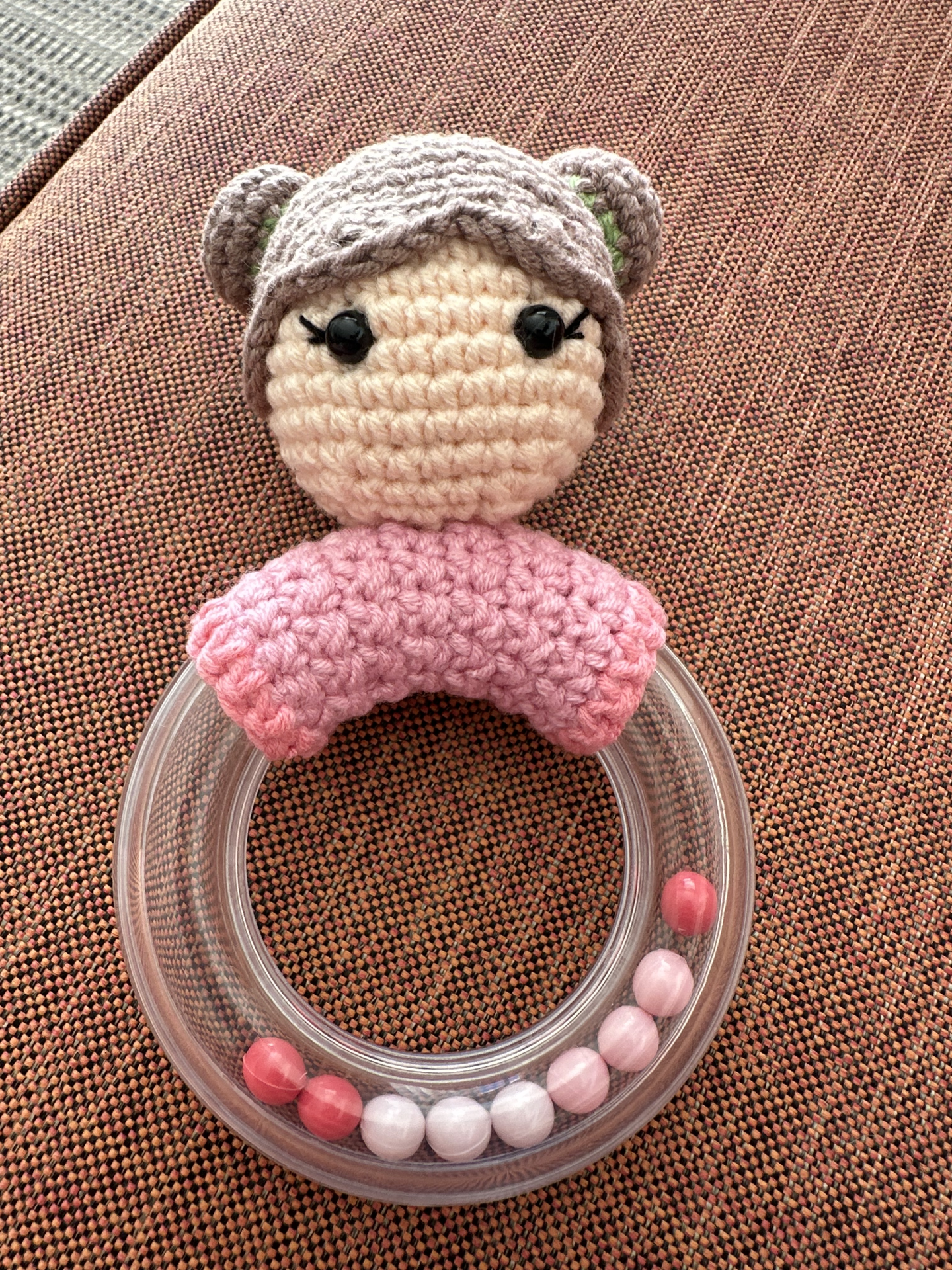Связала в отпуске погремушку по описанию из книги для новорожденной доченьки коллеги Ростика.