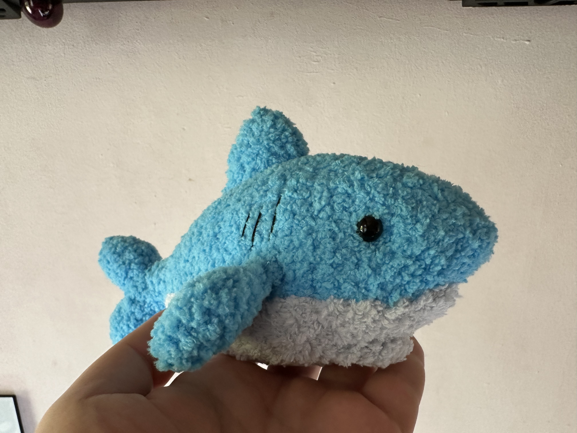 Для племянницы фанатки акул связала этого милого акулёнка по описанию онлайн.