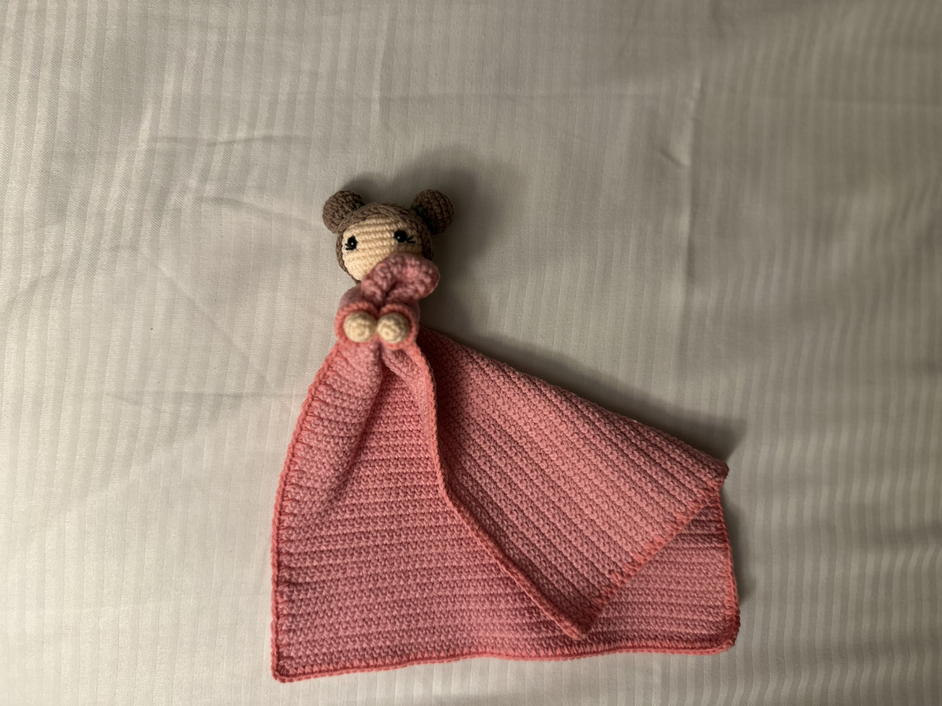 В дополнение к погремушке связала комфортер по описанию из книги для коллеги Ростика.