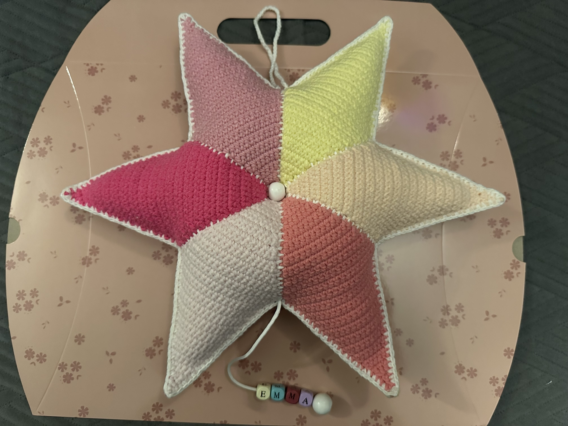 Для малышей сделала музыкальные звёздочки на подвесках. Идею подсмотрела на выставке хендмейда. Передняя и задняя стороны оформлены разными цветами.