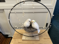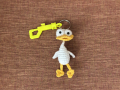 Этого птенчика я связала в подарок для дочки одной знакомой. Связан он из Ализе софти, внутри звенящий шарик. Птичка крепко пришита к деревянному колечку-грызунку.