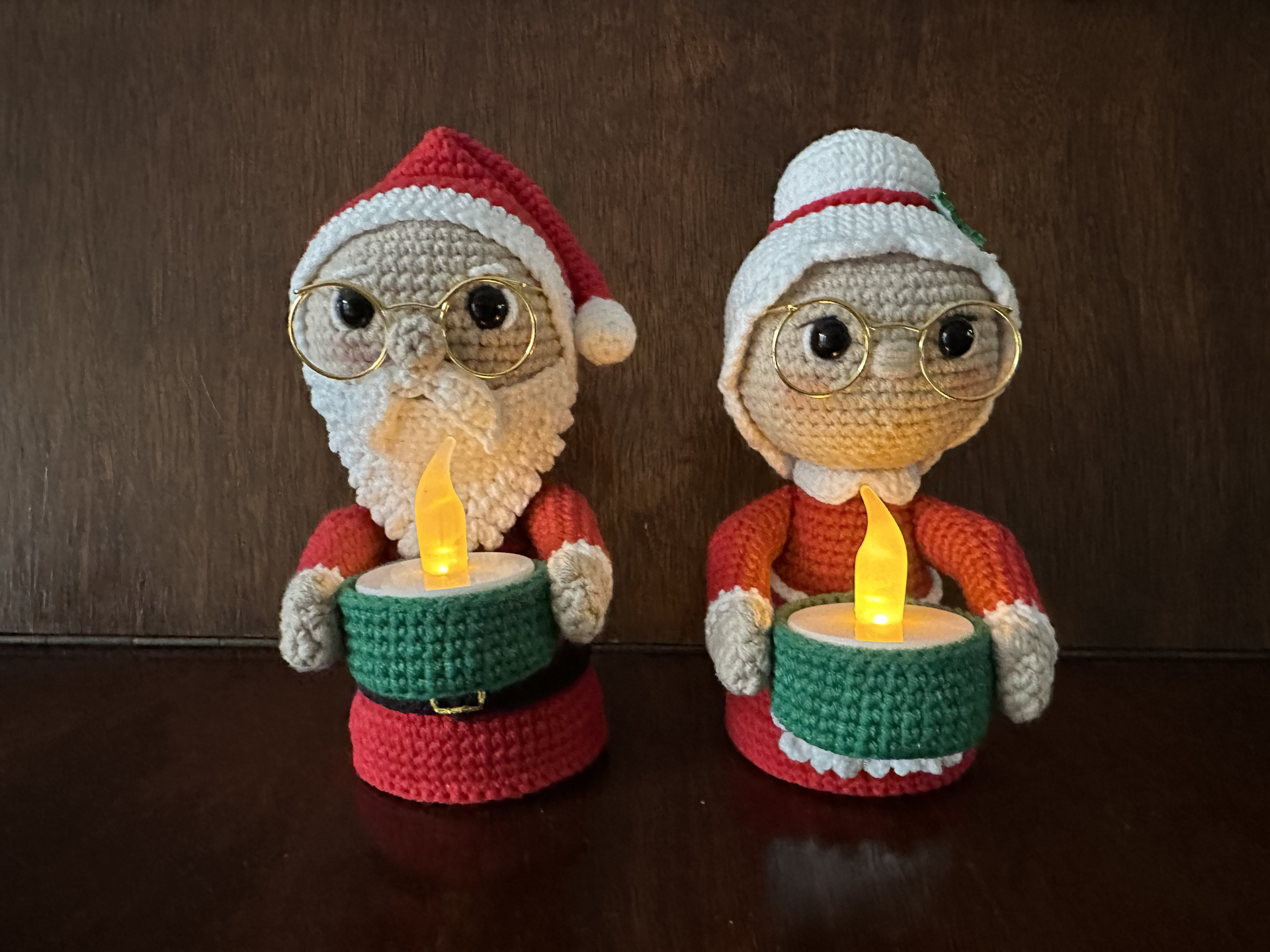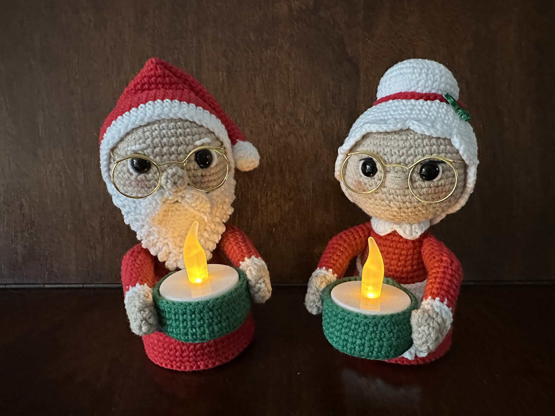 По описанию из книги связала ещё два рождественских подсвечника — мистера и миссис Клаус.