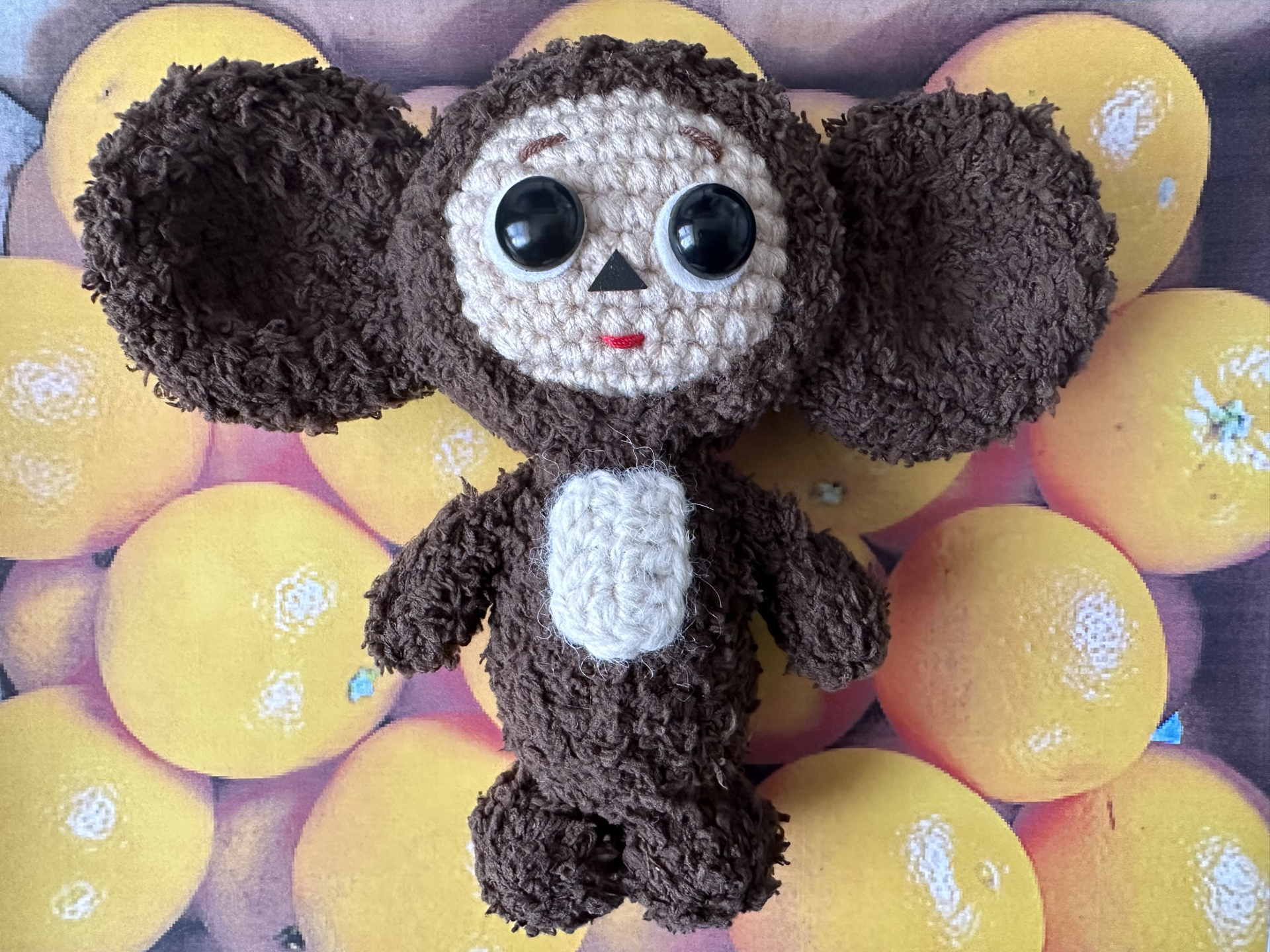 По одному онлайн описанию, но из разных ниток связала этих Чебурашек.