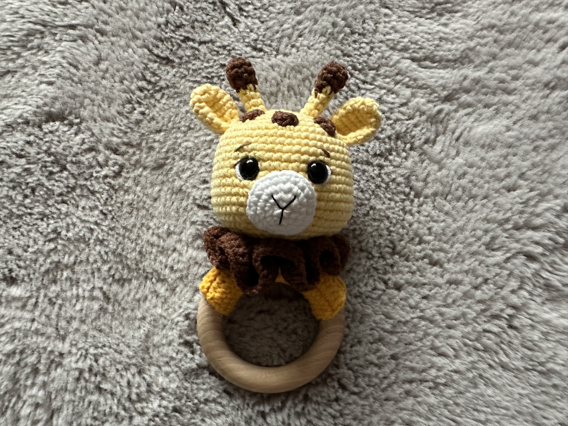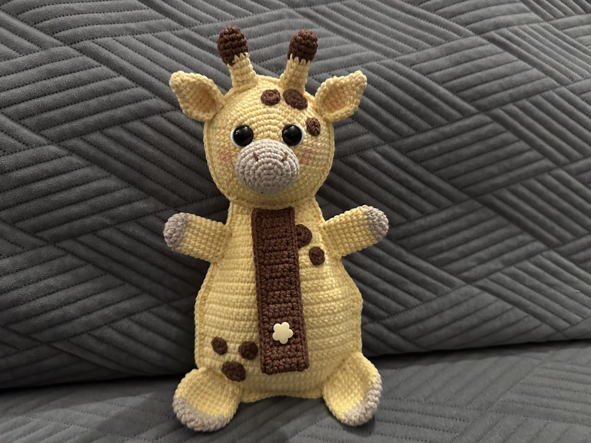 По описанию из книги связала этого жирафика, слегка изменив его сборку и засунув пищалку внутрь.