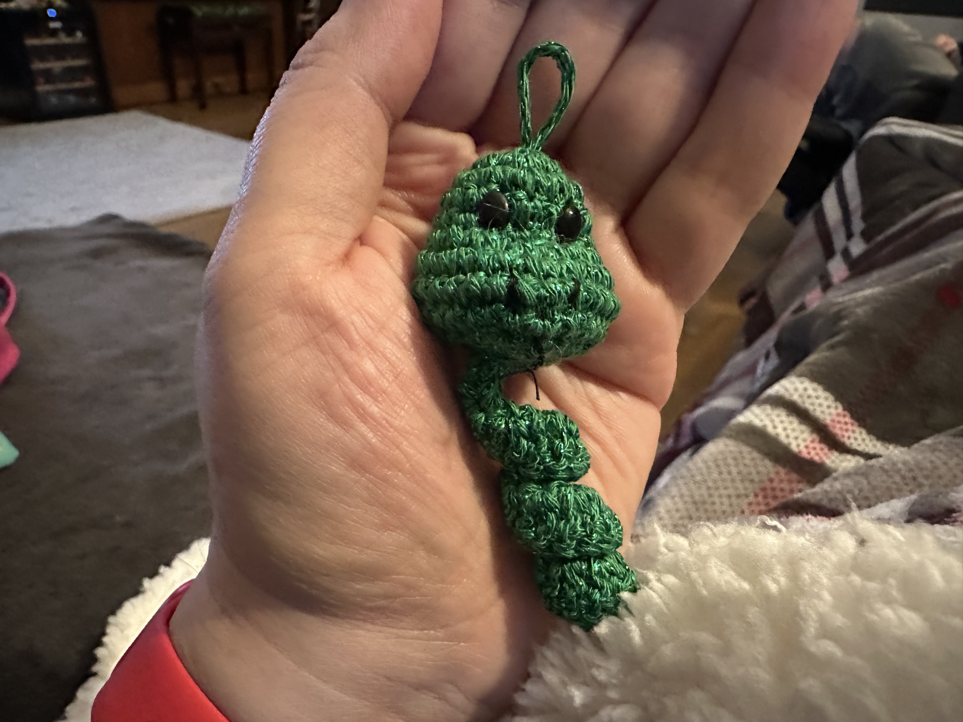 Символ года — Зелёная змейка, связана по описанию из Интернета.