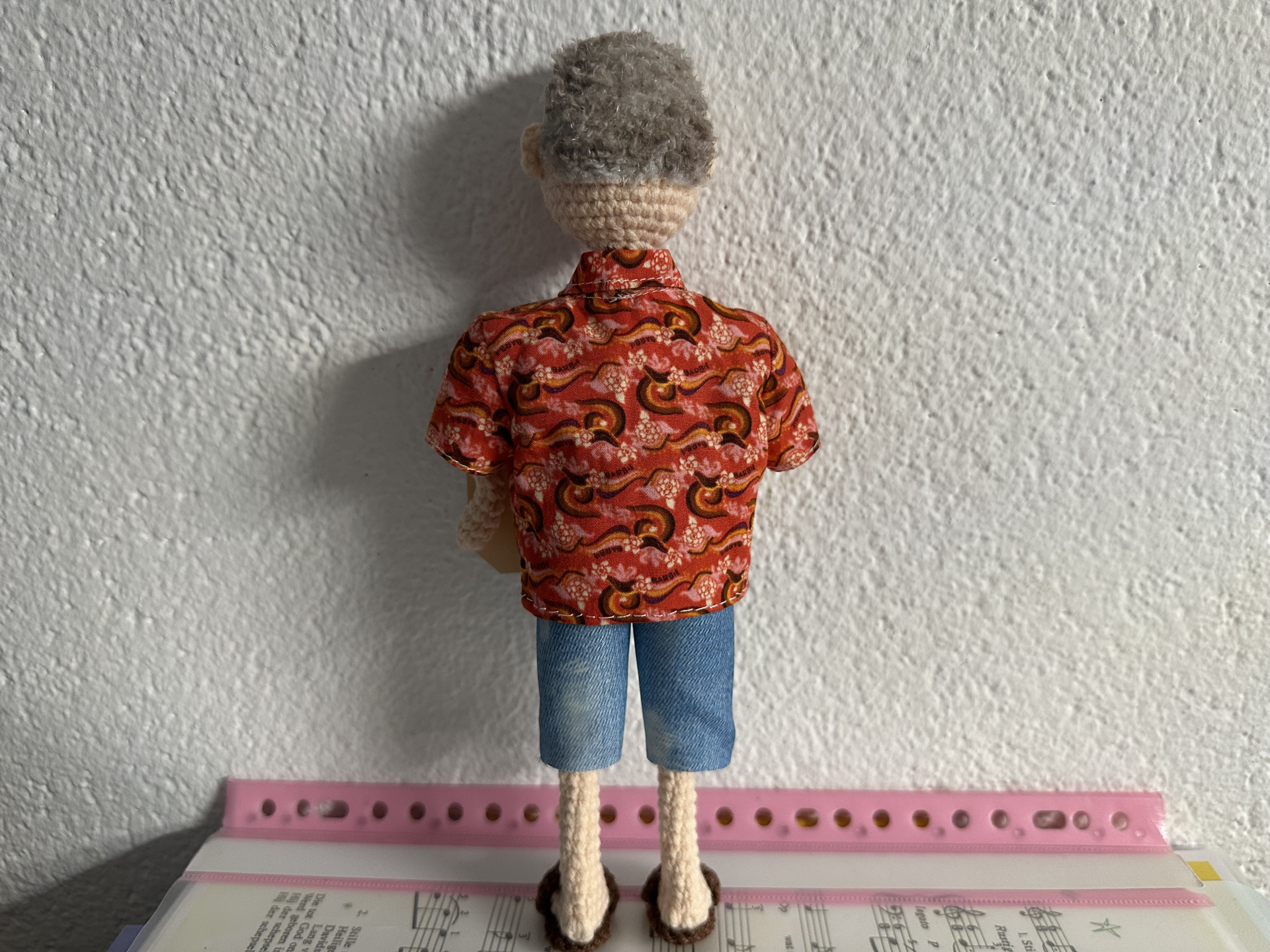 В дополнение к погремушке и комфортеру по описанию из книги связала ещё музыкальную куколку для коллеги Ростика.