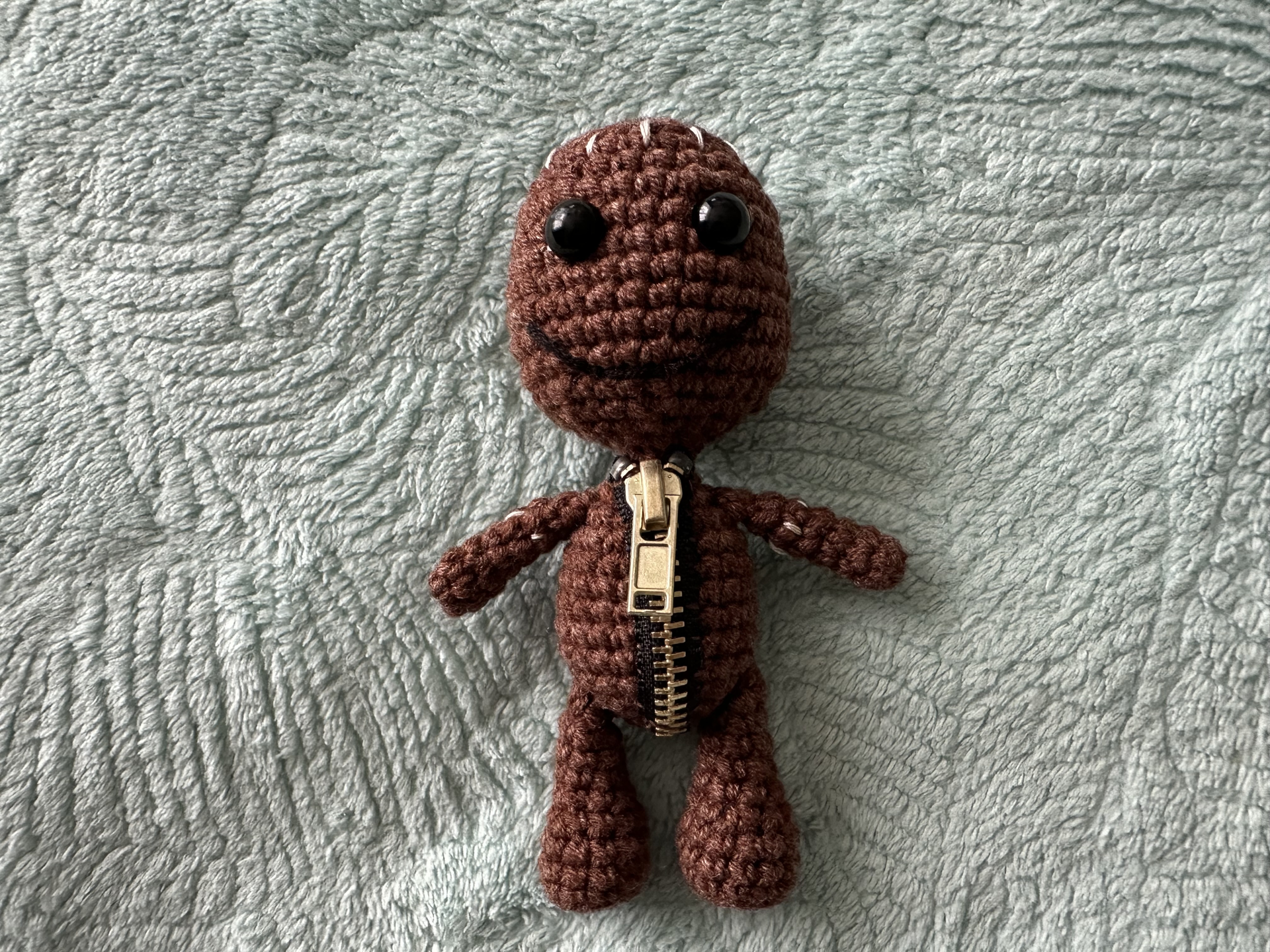 Маша дуже любить гру Little Big Planet. Вона давно просила мене зв’язати для неї персонажа цієї гри – маленького чоловічка Sackboy. І ось який малюк у мене вийшов!
