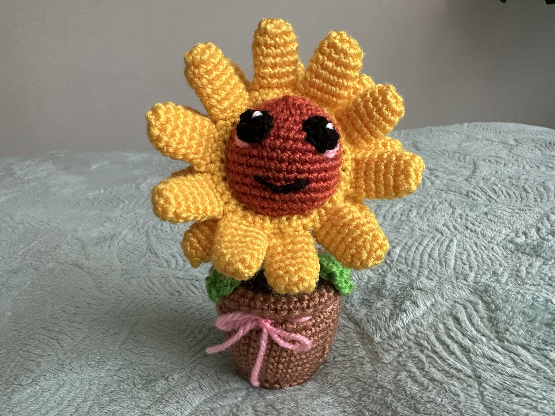 Для племінниці зв’язала соняшник у горщику з набору для в’язання.