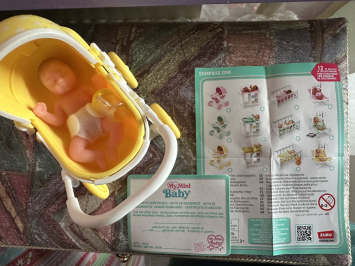 Вирішила перевірити, що це за лялька-сюрприз “My mini Baby surprise doll”. Мені попався чарівний малюк у жовтому візку з пляшечкою та сертифікатом про народження.