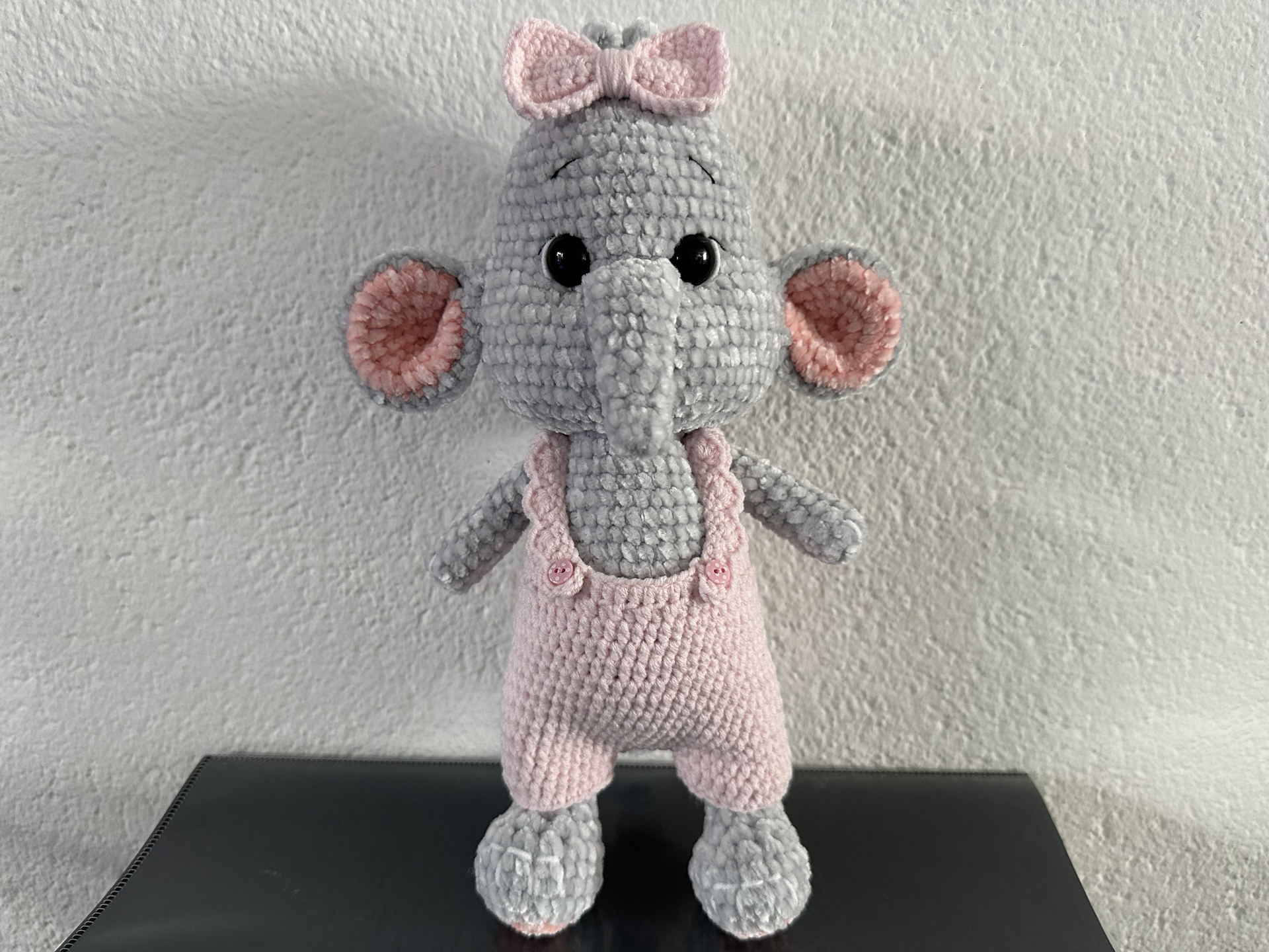 За описом онлайн зв’язала такого чудового слоненятка з плюшевої пряжі.